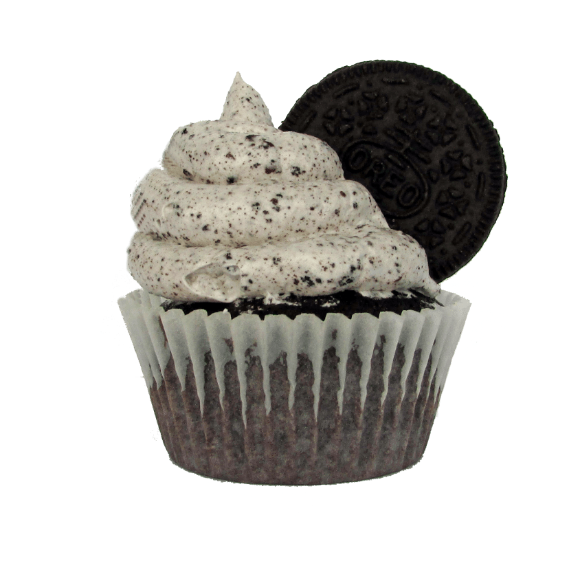 Chocolade cake, afgewerkt met luchtige Oreo crème en een Oreo koekje.